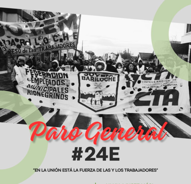 El 24 de enero PARAMOS y nos MOVILIZAMOS por los derechos de las y los trabajadores de Bariloche y de toda la Argentina. Concentración y movilización LUGAR: Onelli y Brown DÍA: Miércoles 24/01 HORARIO: 11.30 horas Importante El paro comienza el 24/01 a las 00 horas y finaliza a las 23.59 horas del mismo día…