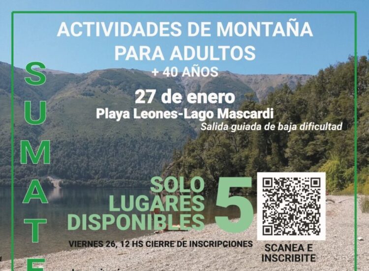 ¡Quedan 5 lugares para participar la salida recreativa de montaña para adultos! Te invitamos a conocer y recorrer Playa Leones – Lago Mascardi, pasar un momento distinto con compañeros y compañeras de diferentes áreas que desean disfrutar de una divertida jornada. ¡Anotate! DATOS DE LA SALIDA ÚLTIMO DÍA DE INSCRIPCIÓN HOY 26/01 hasta las 12.30…