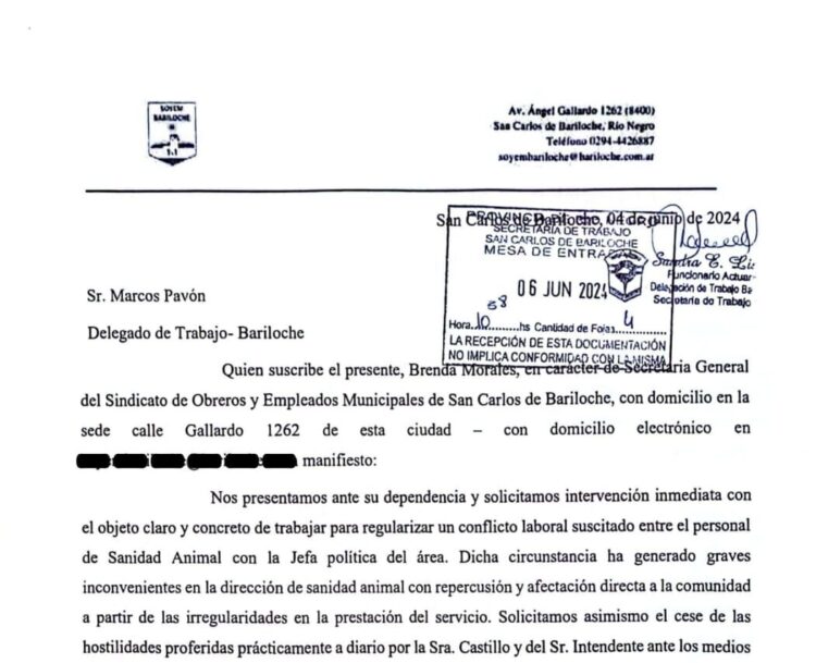 A través de una nota que presentamos ayer -6/06- ante la Delegación de Trabajo, solicitamos que el organismo intervenga de manera inmediata con el objeto claro y concreto de trabajar en la regularización del conflicto laboral suscitado entre la jefa política de Sanidad Animal, Marcela Castillo, y el personal del área. Dicha circunstancia ha generado…