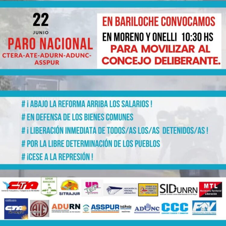 Las y los integrantes de la Comisión Directiva del Soyem Bariloche, junto al cuerpo de referentes de las áreas municipales, acompañarán la marcha en apoyo al pueblo jujeño. Acciones Se marchará hacia el Centro Cívico para hacer entrega de un petitorio en el Concejo Deliberante, a través del cual se solicitará que se expidan frente…