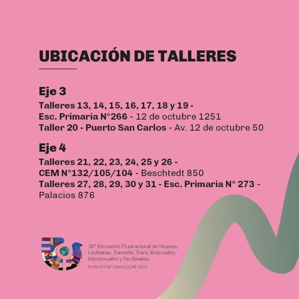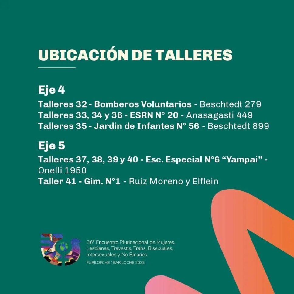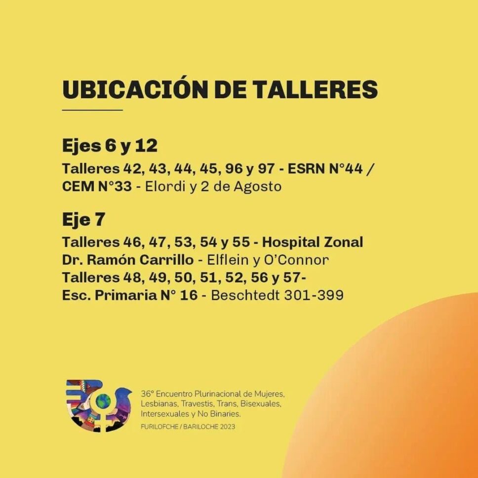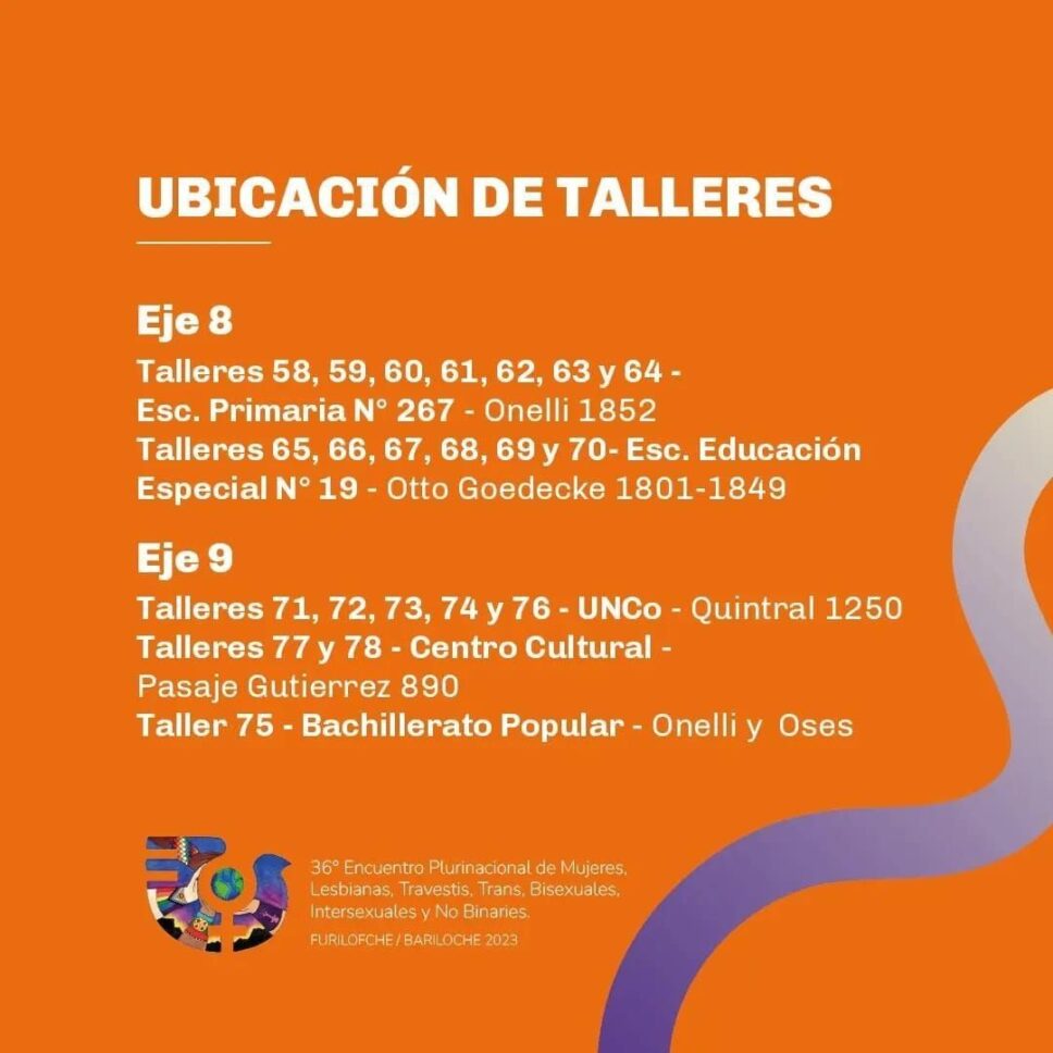 ¡Se viene el 36° Encuentro Plurinacional de Mujeres, Lesbianas, Travestis, Trans, Bisexuales, Intersexuales y No Binaries Bariloche Furilofche 2023! Compartimos el cronograma de las actividades que se desarrollarán en el marco de las tres jornadas.