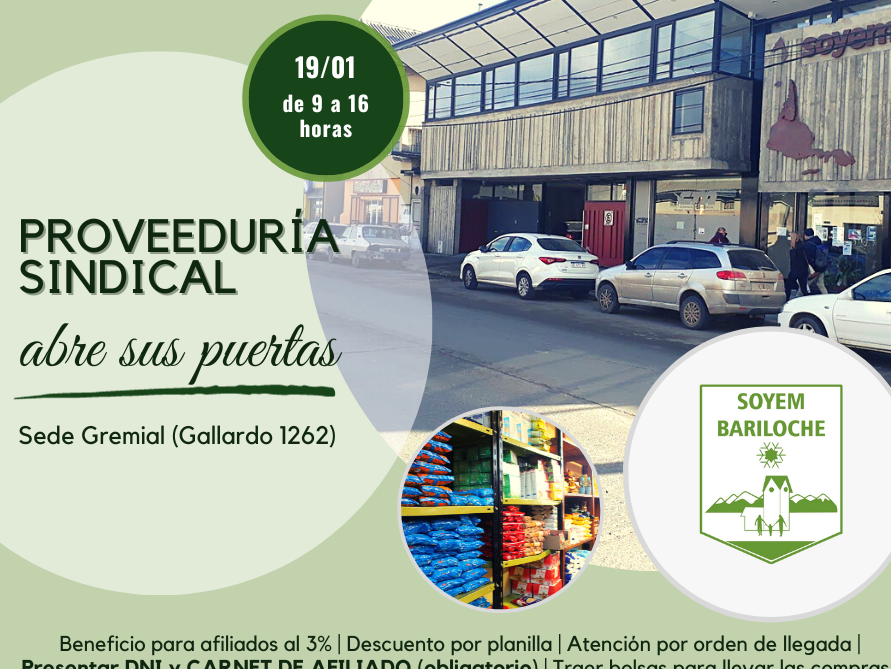 Este mes… la Proveeduría Sindical abre sus puertas el viernes 19. Te esperamos en el horario habitual de 9 a 16 horas.
