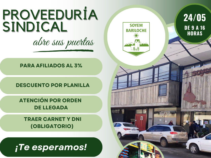 + INFO en nuestra web: https://soyembariloche.com.ar/prest…/proveeduria-sindical/