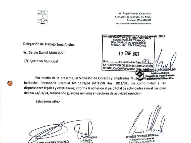 #24E: Las y los trabajadores municipales de Bariloche adhieren al Paro General 22 de enero de 2024 Leer más