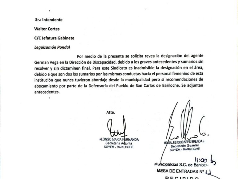 Soyem Bariloche solicitó que se revea la designación del agente Germán Vega en la Dirección de Discapacidad 3 de enero de 2024 Leer más