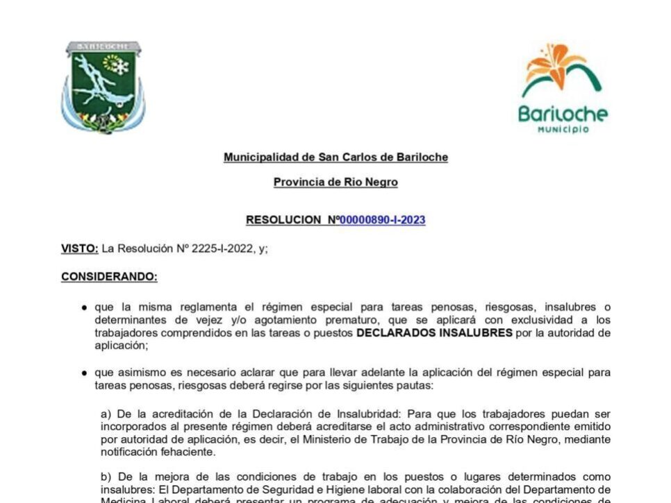 Se comparte copia de la Resolución Nº 00000890-I-2023 y el Anexo I, donde encontrarán información sobre la reglamentación del régimen especial para tareas penosas, riesgosas, insalubres o determinantes de vejez y/o agotamiento prematuro, que se aplicará con exclusividad a los trabajadores comprendidos en las tareas o puestos declarados insalubres por la autoridad de aplicación.